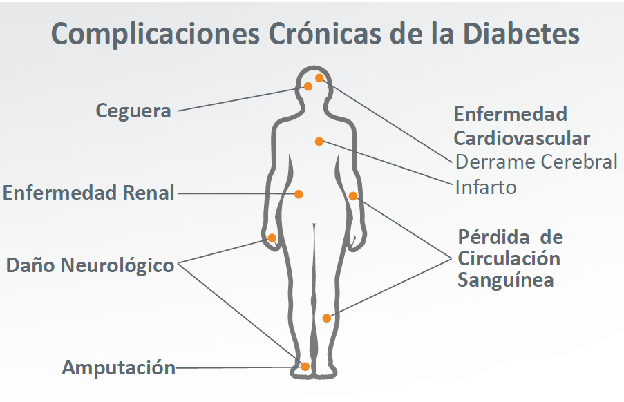 El tener diabetes implica que se afectan todo los sistemas u órganos del cuerpo, deteriorando la calidad de vida del paciente progresivamente, pudiendo ocasionar complicaciones serias y la muerte. Esta es un síndrome metabólico, es decir un conjunto de enfermedades y problemas que se desencadenan en el tiempo como efecto domino por una causa primaria que es la no absorción a nivel celular de la glucosa.
